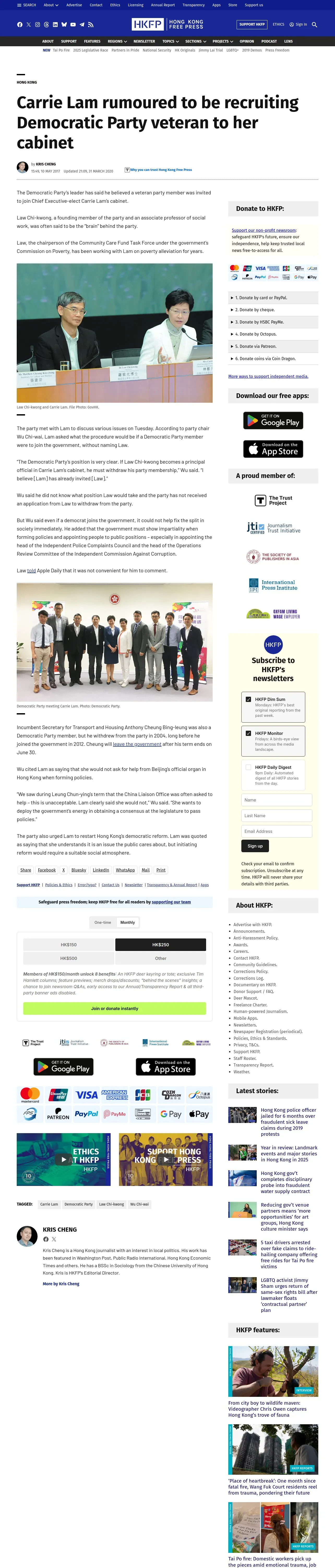 https://hongkongfp.com:443/2017/05/10/carrie-lam-rumoured-recruiting-democratic-party-veteran-cabinet/