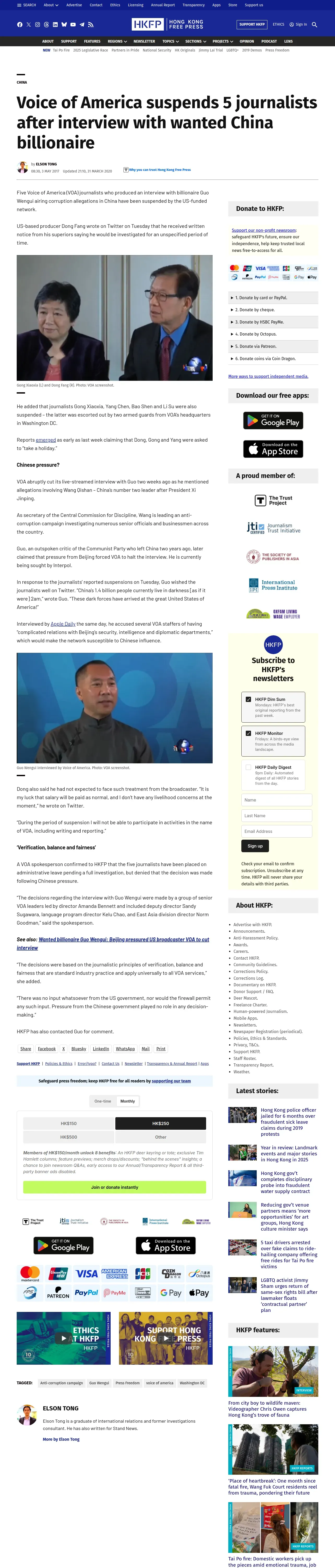 取得元URL: https://hongkongfp.com:443/2017/05/03/us-funded-voice-america-suspends-5-journalists-interview-wanted-china-billionaire-reports/