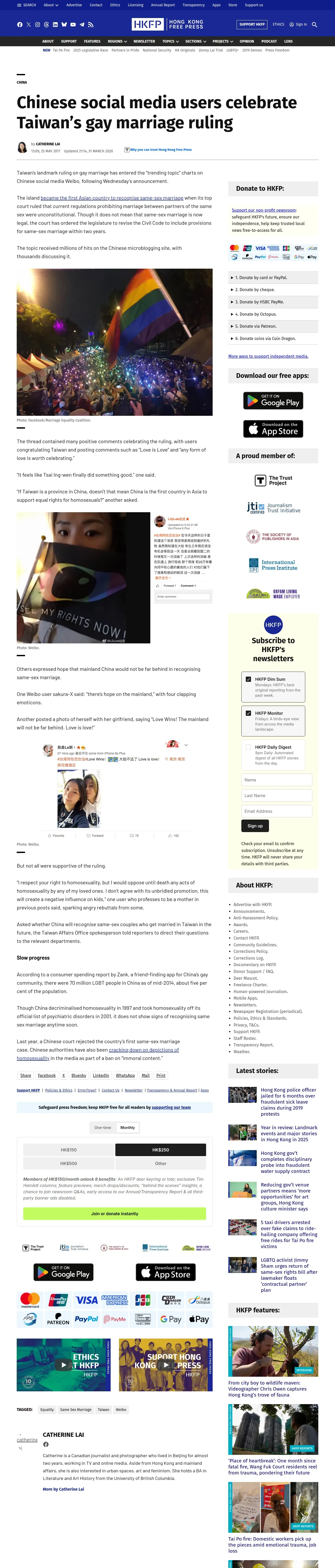 https://hongkongfp.com:443/2017/05/25/chinese-social-media-users-celebrate-taiwans-gay-marriage-ruling/