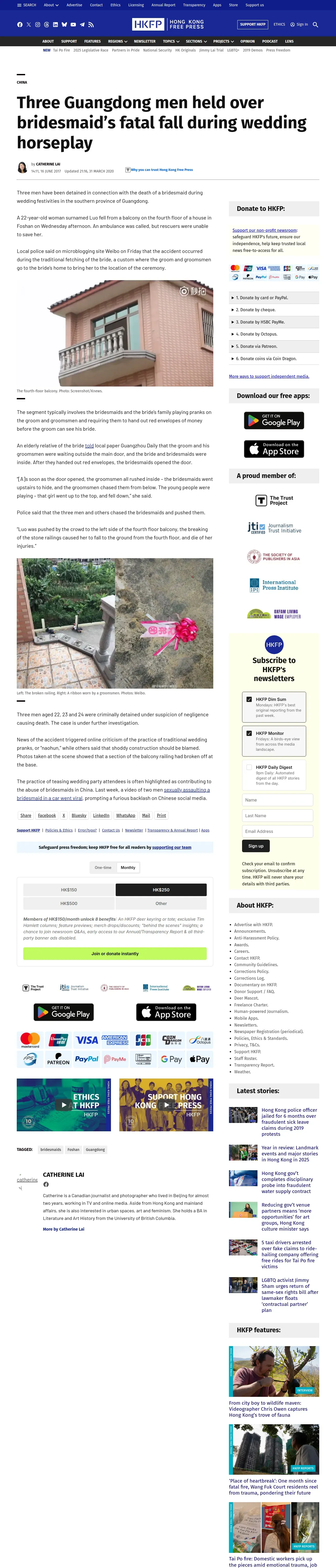 https://hongkongfp.com:443/2017/06/16/three-guangzhou-men-held-bridesmaids-fatal-fall-traditional-wedding-horseplay/