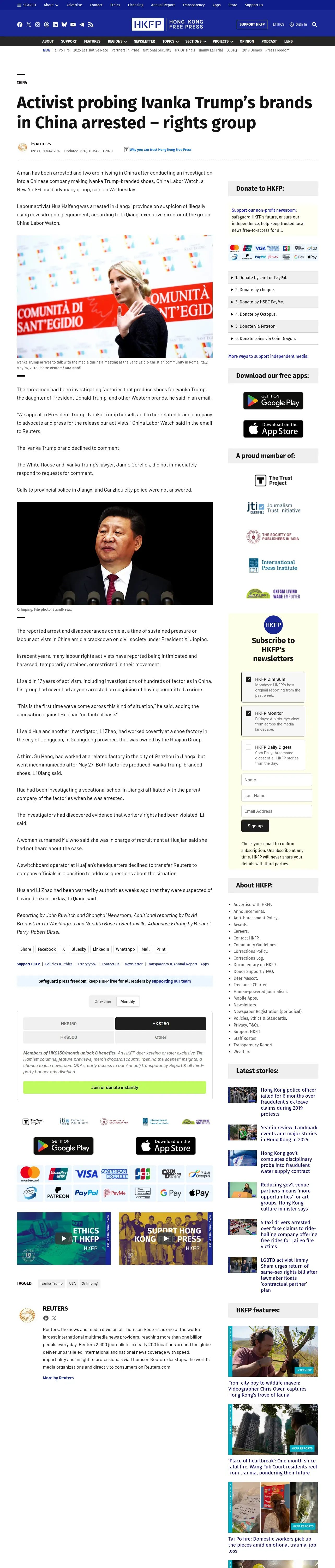 https://hongkongfp.com:443/2017/05/31/activist-probing-ivanka-trumps-brands-china-arrested-rights-group/