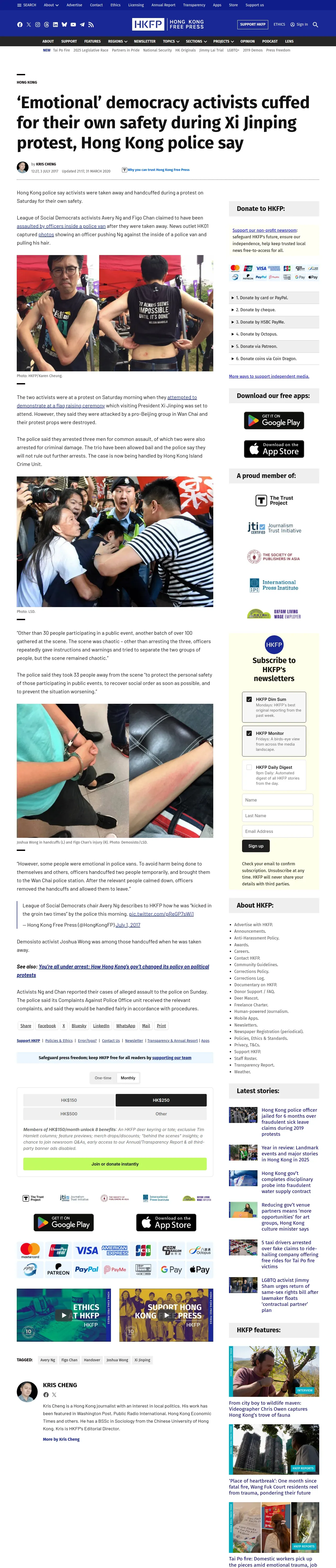 https://hongkongfp.com:443/2017/07/03/emotional-democracy-activists-cuffed-safety-xi-jinping-protest-hong-kong-police-say/