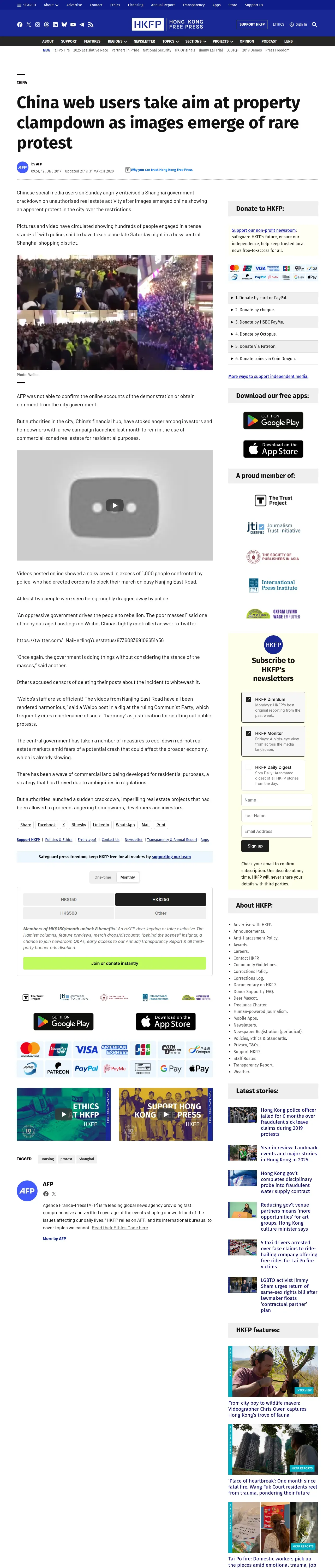 取得元URL: https://hongkongfp.com:443/2017/06/12/china-web-users-take-aim-property-clampdown-images-emerge-rare-protest/