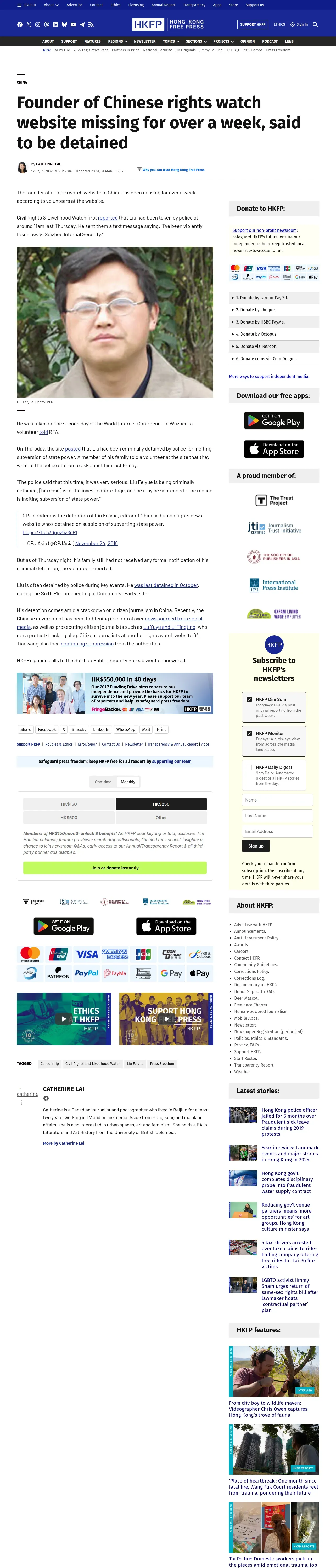 https://hongkongfp.com:443/2016/11/25/founder-chinese-rights-watch-website-missing-week-said-detained/