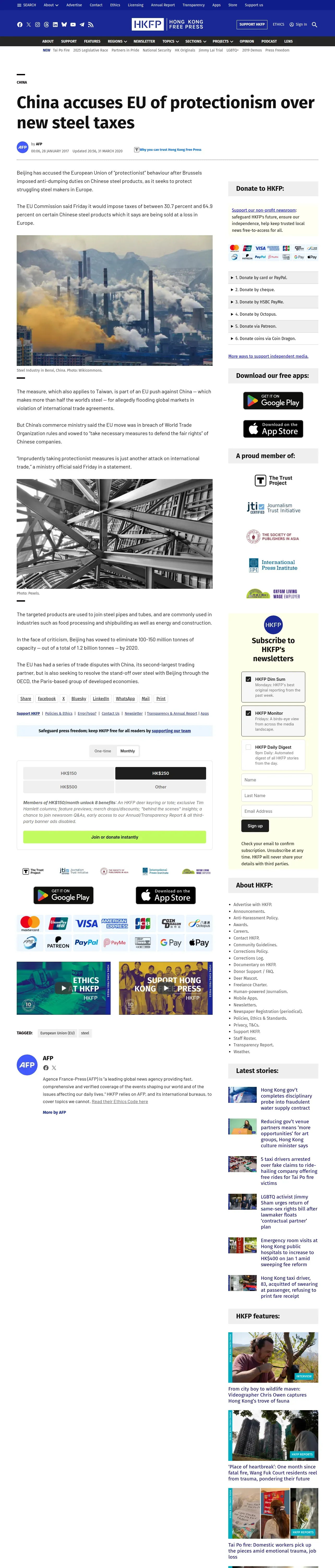 https://hongkongfp.com:443/2017/01/28/china-accuses-eu-protectionism-new-steel-taxes/