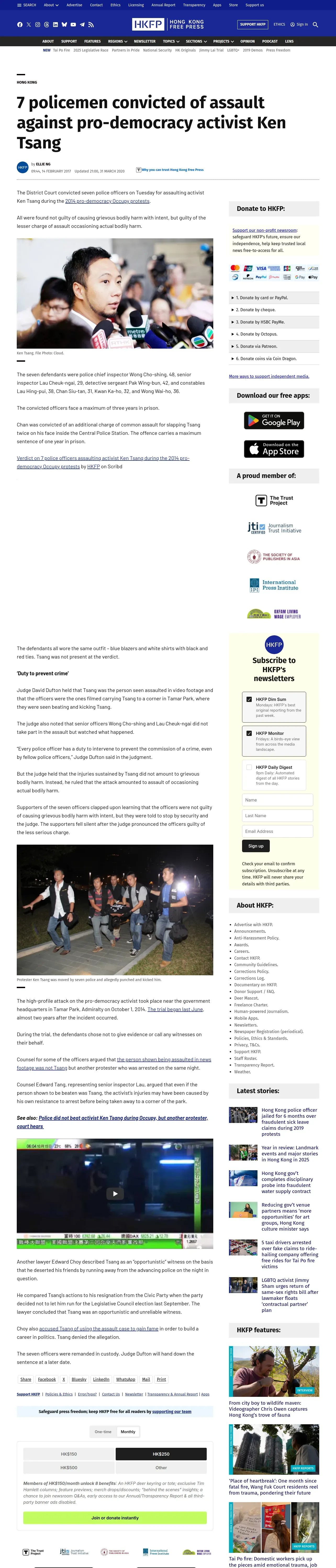 https://hongkongfp.com:443/2017/02/14/breaking-7-policemen-convicted-lesser-assault-charge-pro-democracy-activist-ken-tsang/