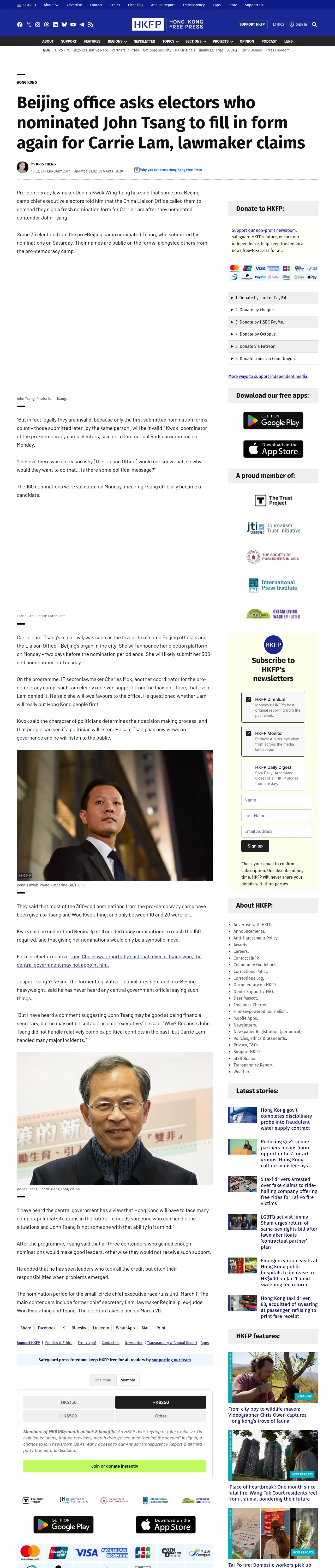取得元URL: https://hongkongfp.com:443/2017/02/27/beijing-office-asks-electors-nominated-john-tsang-fill-form-carrie-lam-lawmaker-claims/