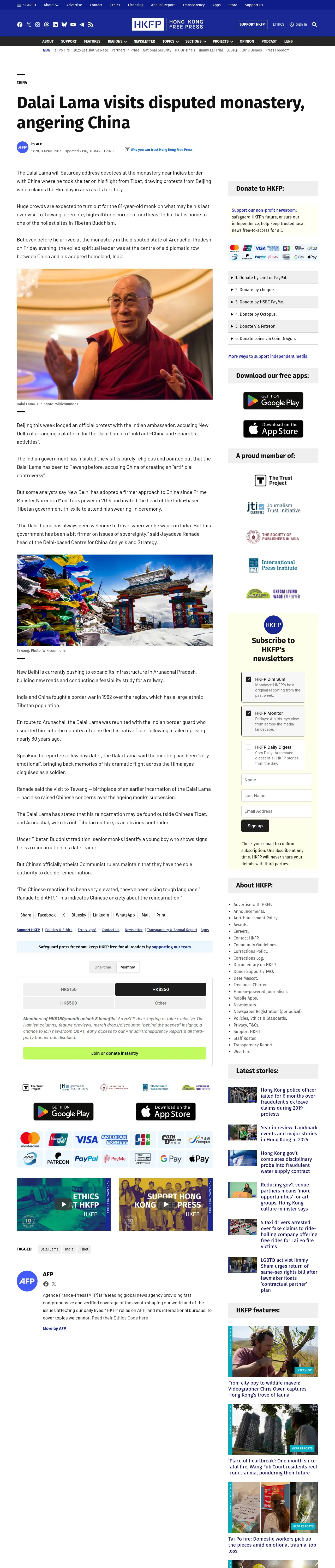 取得元URL: https://hongkongfp.com:443/2017/04/08/dalai-lama-visits-disputed-monastery-angering-china/