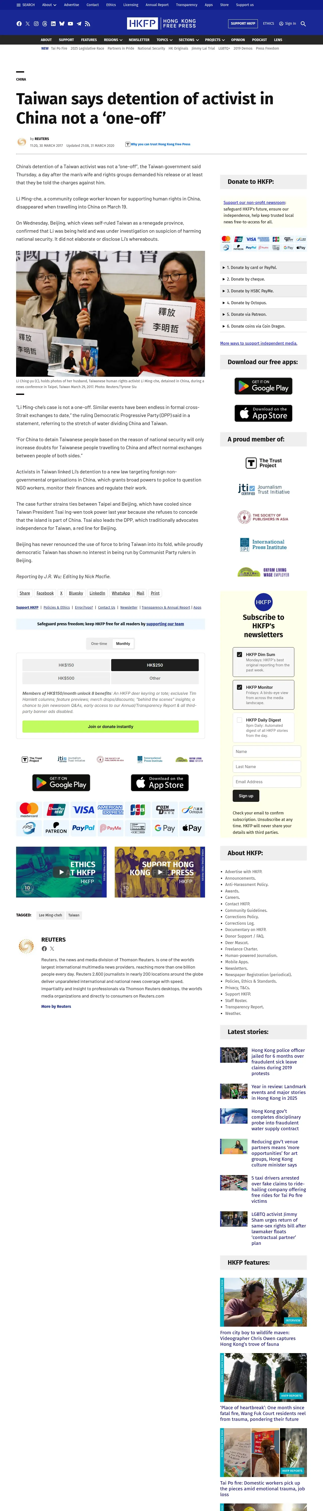 https://hongkongfp.com:443/2017/03/30/taiwan-says-detention-activist-china-not-one-off/