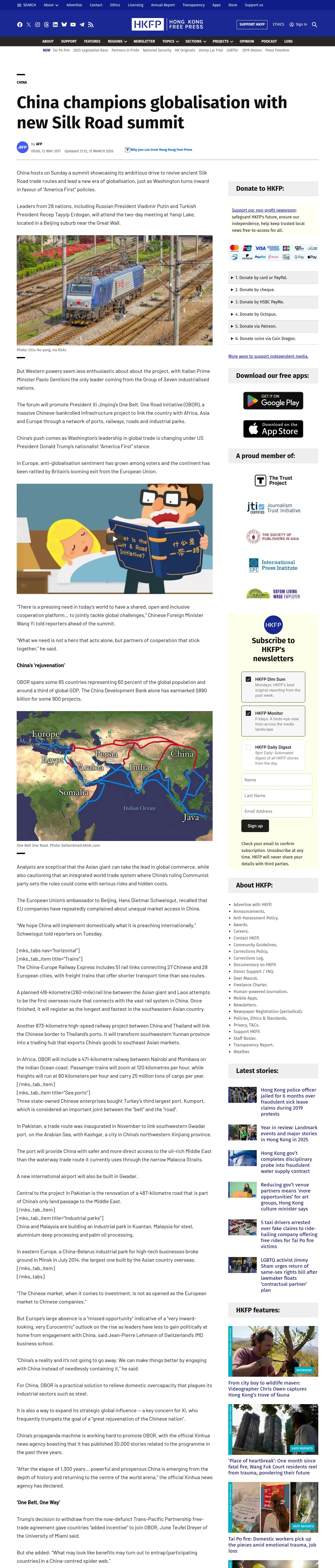 https://hongkongfp.com:443/2017/05/12/china-champions-globalisation-new-silk-road-summit/