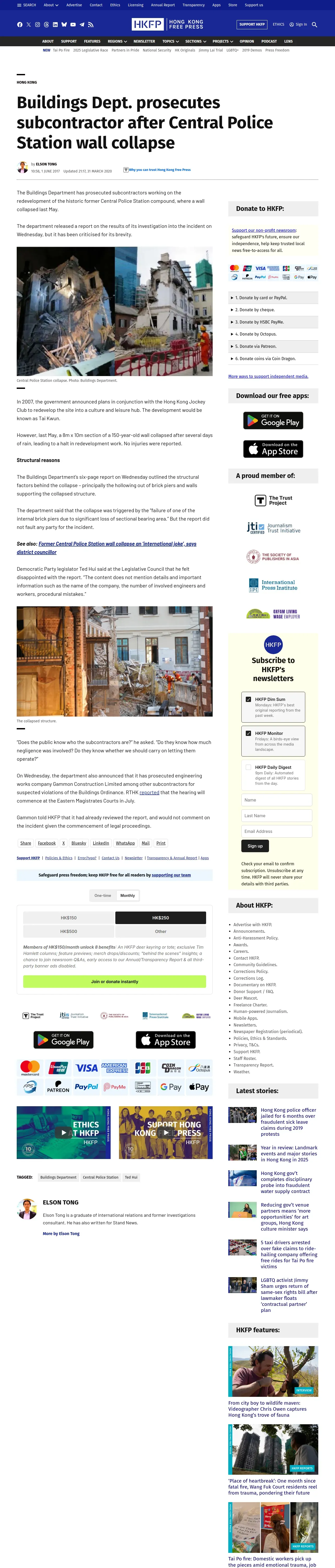 取得元URL: https://hongkongfp.com:443/2017/06/01/buildings-dept-prosecutes-subcontractor-central-police-station-wall-collapse/