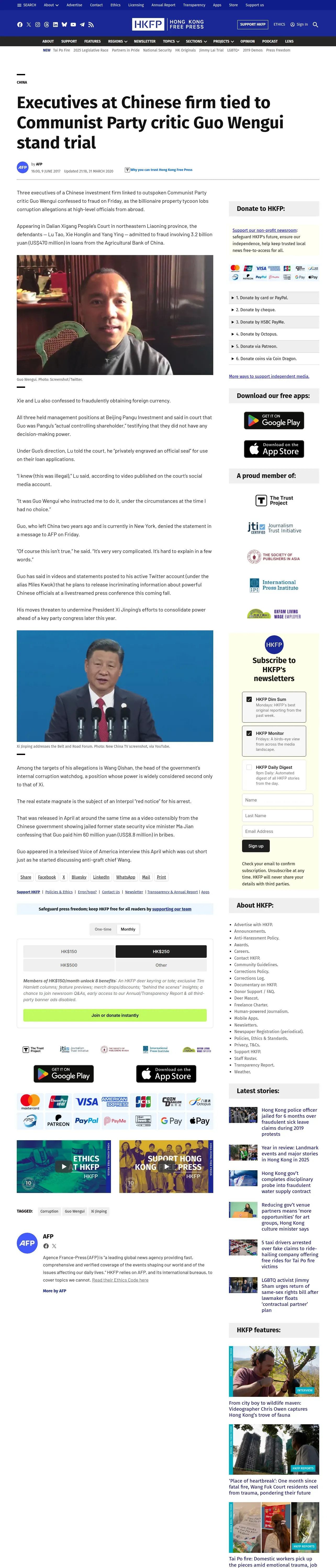 https://hongkongfp.com:443/2017/06/09/executives-chinese-firm-tied-communist-party-critic-guo-wengui-stand-trial/
