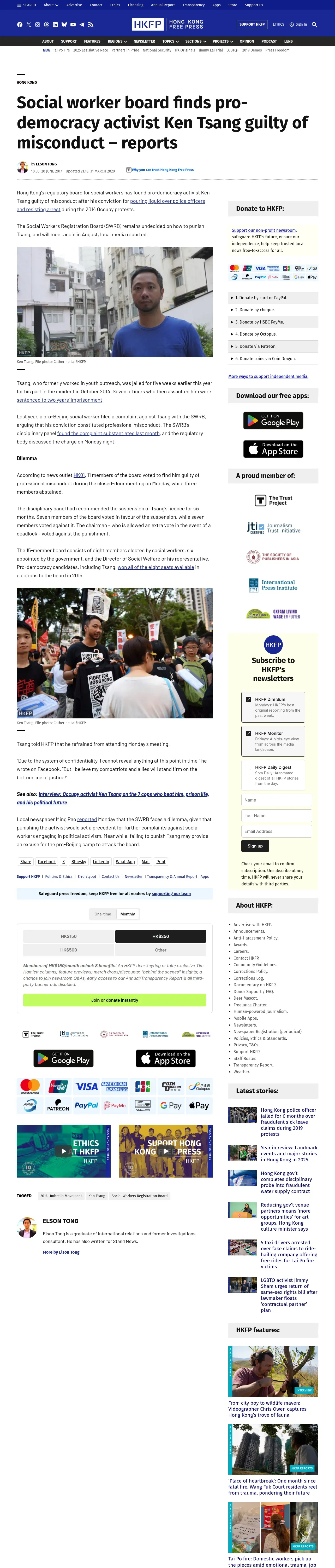 https://hongkongfp.com:443/2017/06/20/social-worker-board-finds-pro-democracy-activist-ken-tsang-guilty-misconduct-reports/