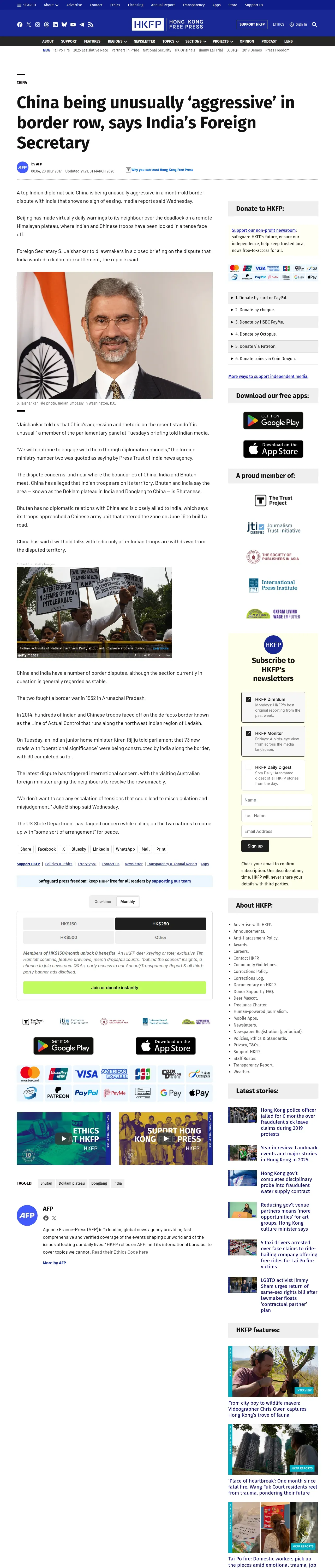 https://hongkongfp.com:443/2017/07/20/china-unusually-aggressive-border-row-says-indias-foreign-secretary/