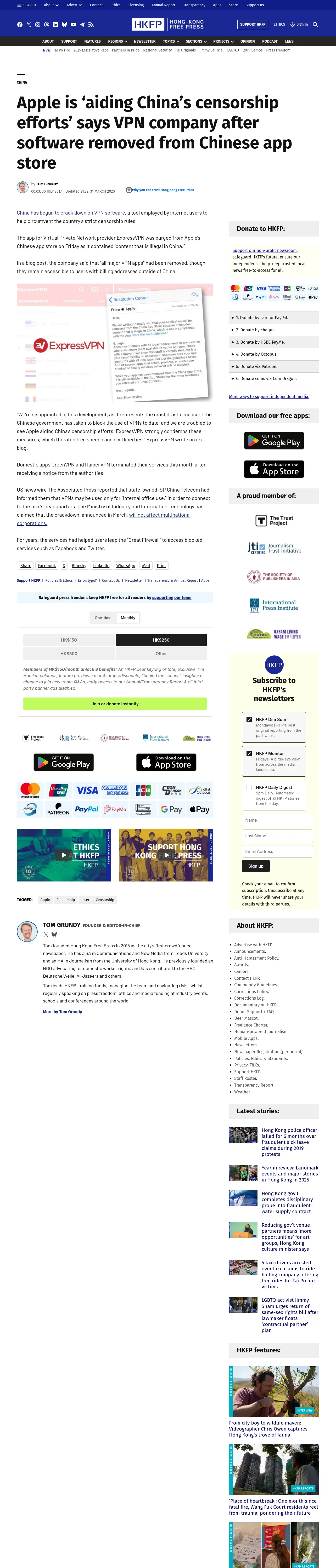 取得元URL: https://hongkongfp.com:443/2017/07/30/apple-aiding-chinas-censorship-efforts-says-vpn-company-software-removed-chinese-app-store/