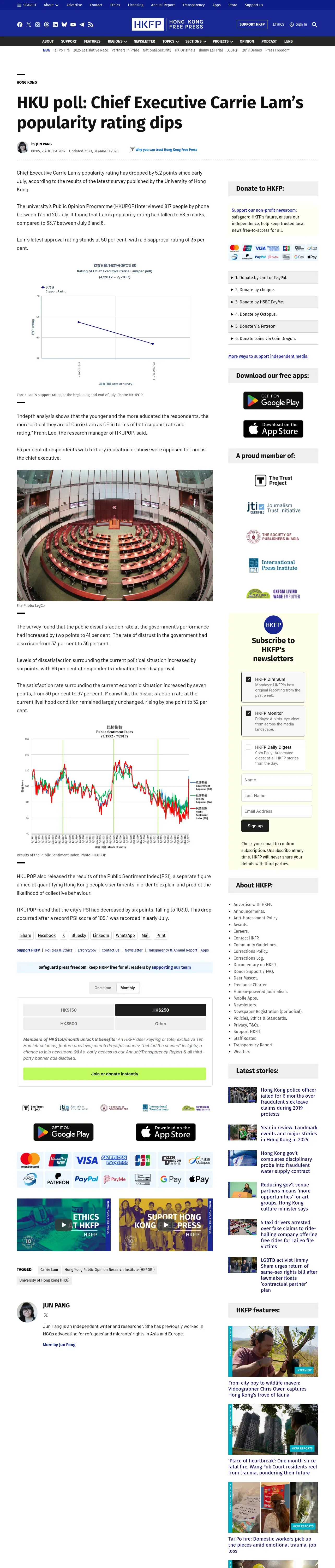 https://hongkongfp.com:443/2017/08/02/hku-poll-chief-executive-carrie-lams-popularity-rating-dips/