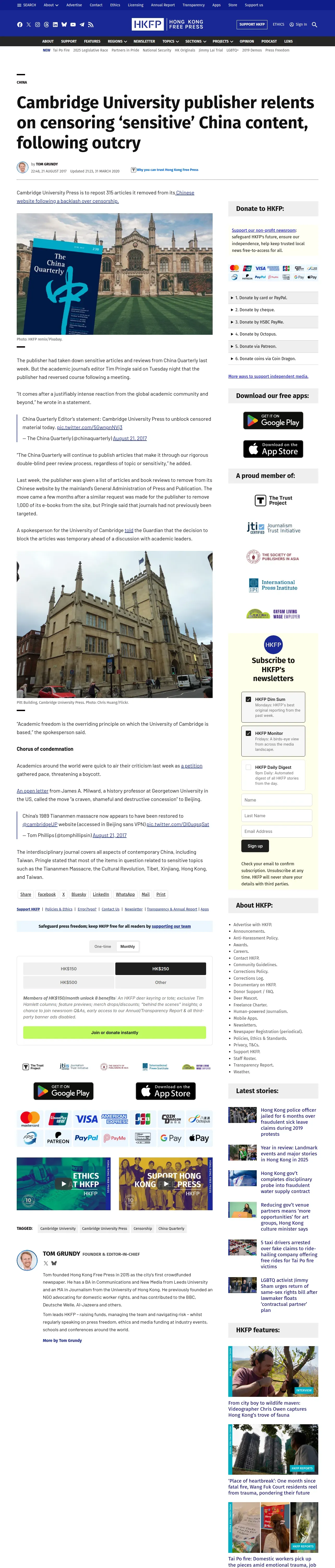 https://hongkongfp.com:443/2017/08/21/just-cambridge-university-publisher-relents-censoring-sensitive-china-content-following-outcry/