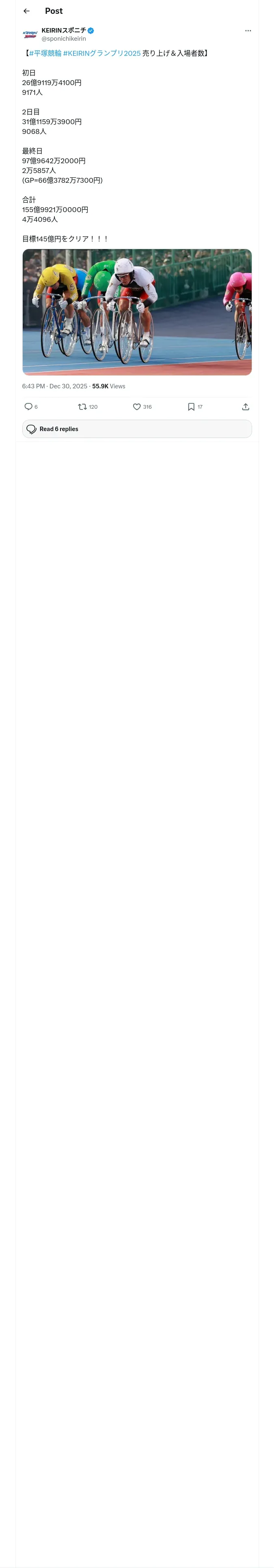 https://x.com:443/sponichikeirin/status/2005937655973044544