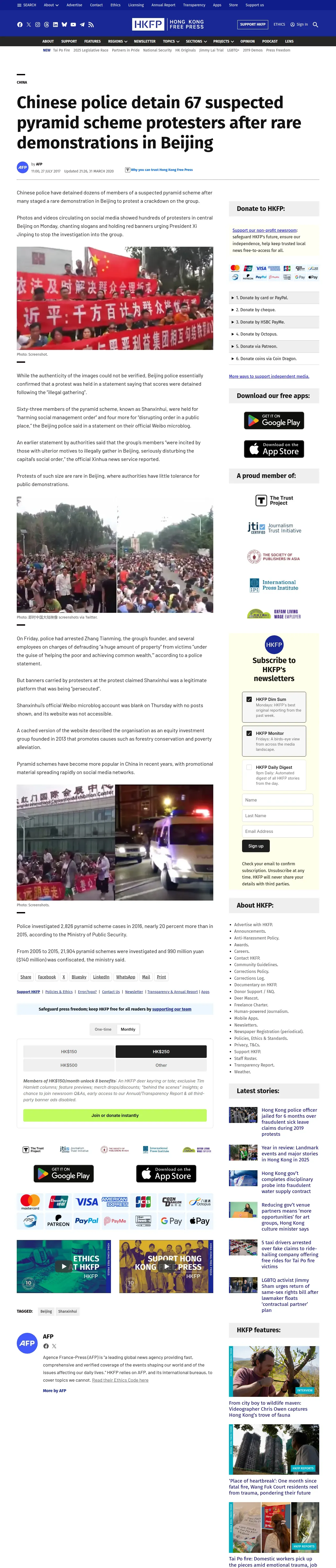 https://hongkongfp.com:443/2017/07/27/chinese-police-detain-67-suspected-pyramid-scheme-protesters-rare-demonstrations-beijing/