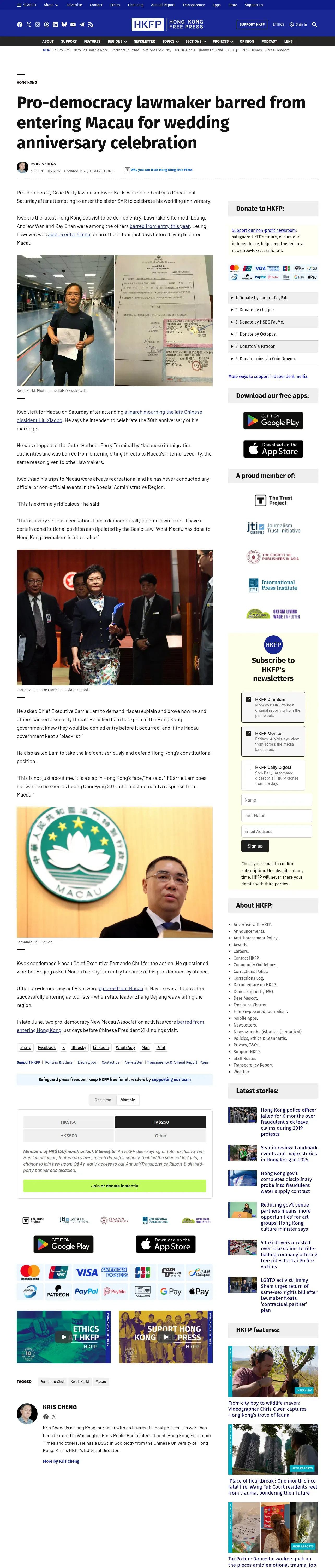 https://hongkongfp.com:443/2017/07/17/pro-democracy-lawmaker-barred-entering-macau-wedding-anniversary-celebration/