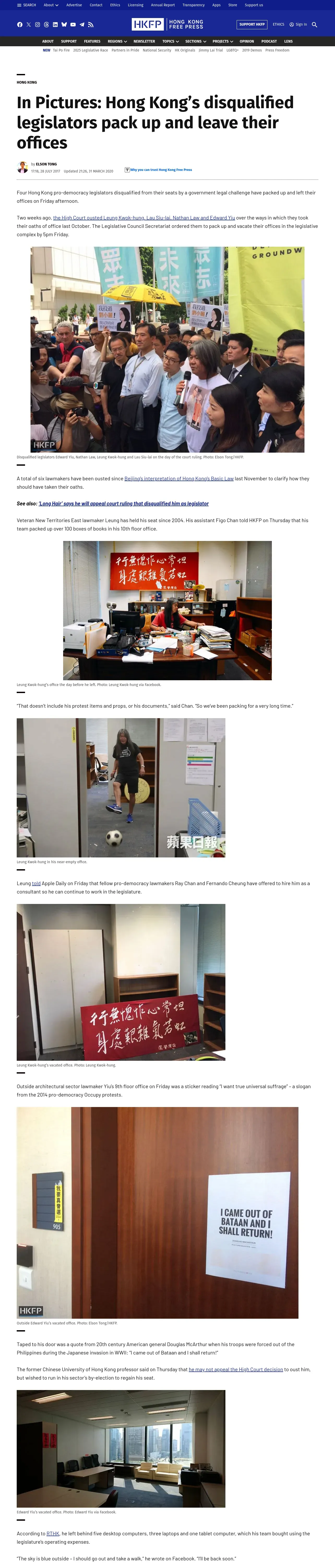取得元URL: https://hongkongfp.com:443/2017/07/28/pictures-hong-kongs-disqualified-legislators-pack-leave-offices/