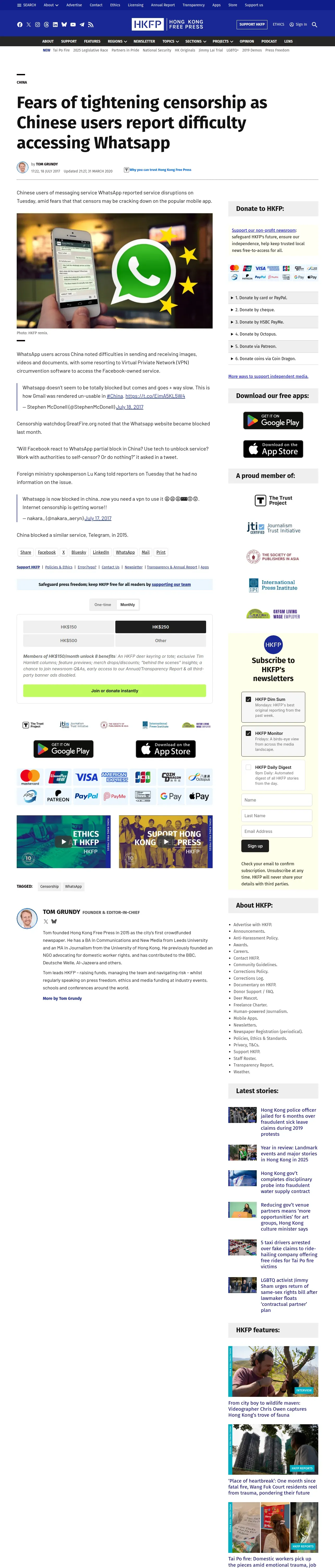 https://hongkongfp.com:443/2017/07/18/fears-tightening-censorship-chinese-users-report-difficulty-accessing-whatsapp/