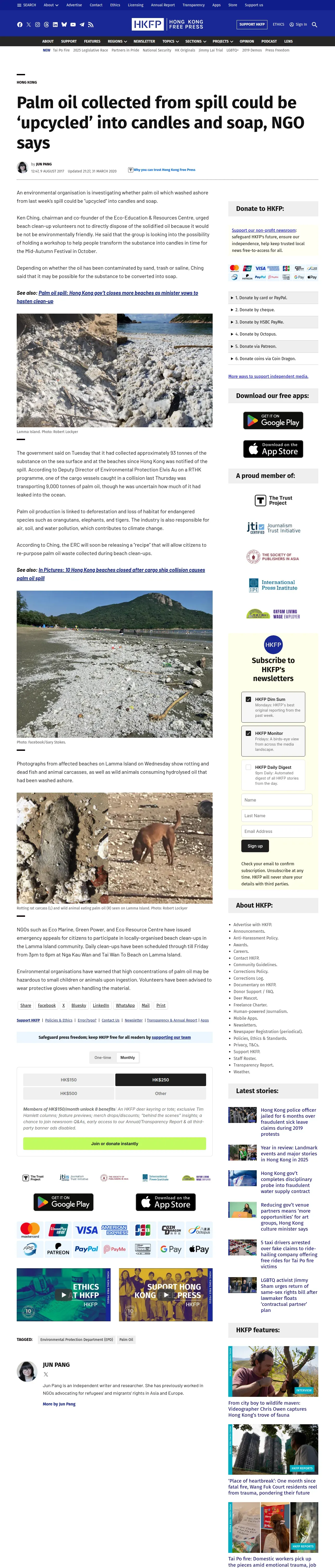 https://hongkongfp.com:443/2017/08/09/palm-oil-collected-spill-upcycled-candles-soap-ngo-says/