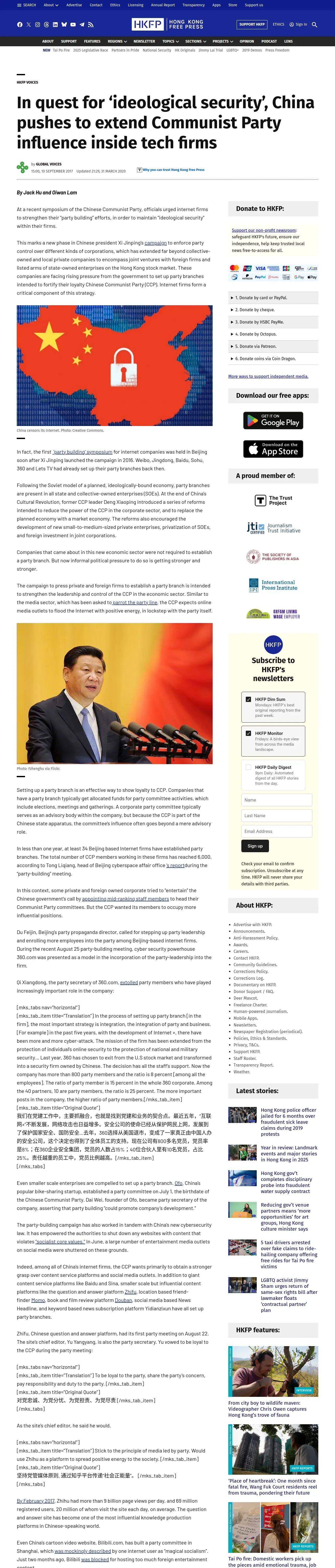 https://hongkongfp.com:443/2017/09/10/quest-ideological-security-china-pushes-extend-communist-party-influence-inside-tech-firms/