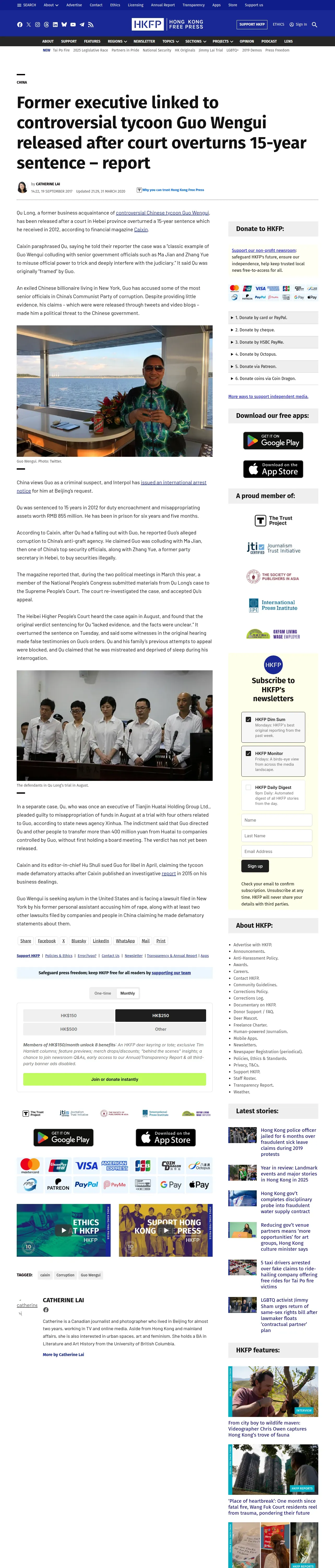 取得元URL: https://hongkongfp.com:443/2017/09/19/former-executive-linked-controversial-tycoon-guo-wengui-released-court-overturns-15-year-sentence-report/