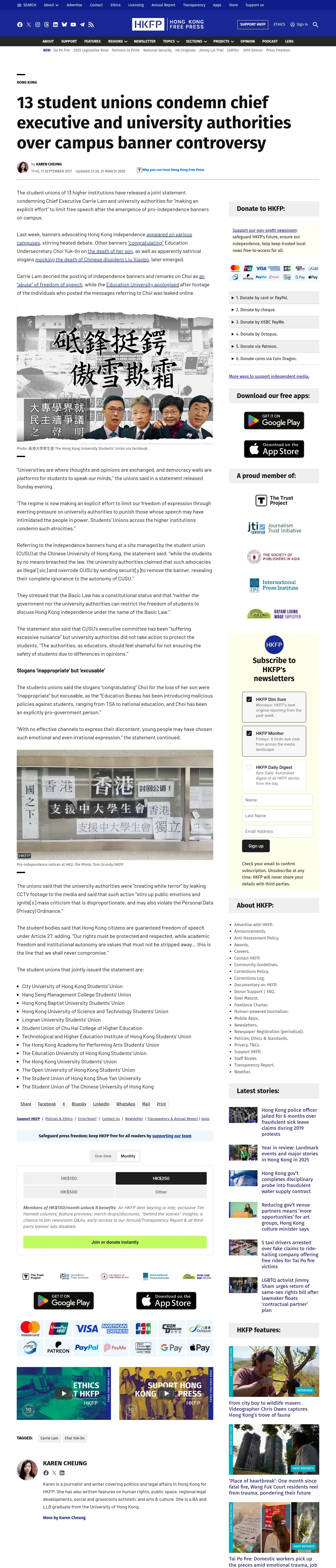 https://hongkongfp.com:443/2017/09/11/13-student-unions-condemn-chief-executive-university-authorities-campus-banner-controversy/