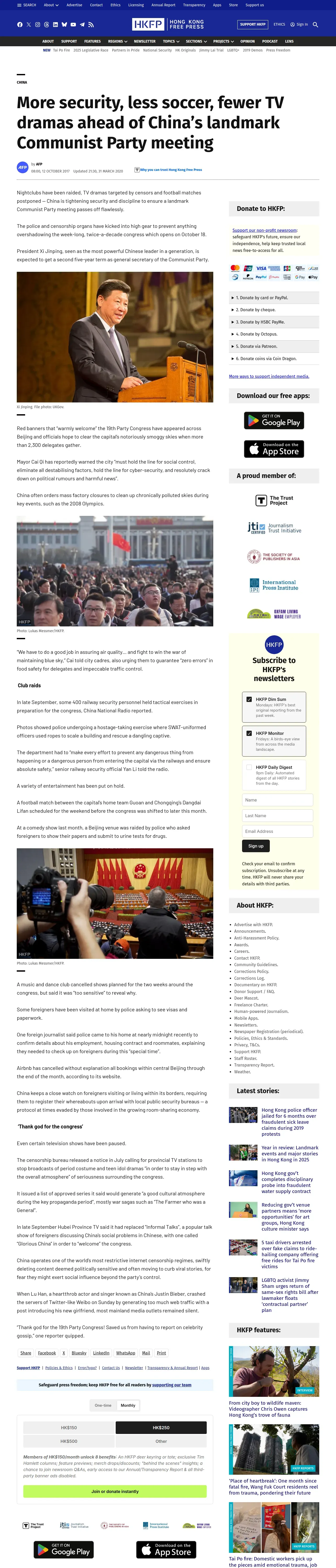 https://hongkongfp.com:443/2017/10/12/security-less-soccer-fewer-tv-dramas-ahead-chinas-landmark-communist-party-meeting/