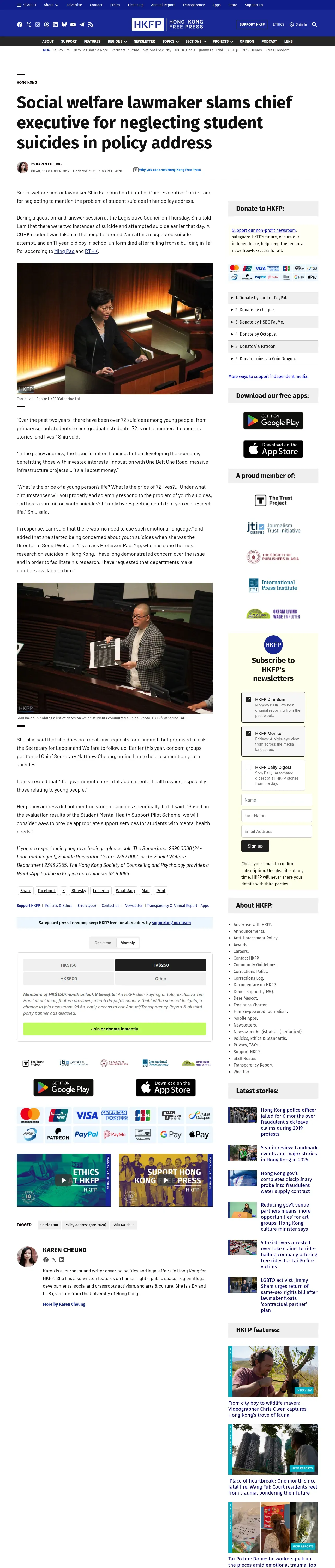 https://hongkongfp.com:443/2017/10/13/social-welfare-lawmaker-slams-chief-executive-neglecting-student-suicides-policy-address/
