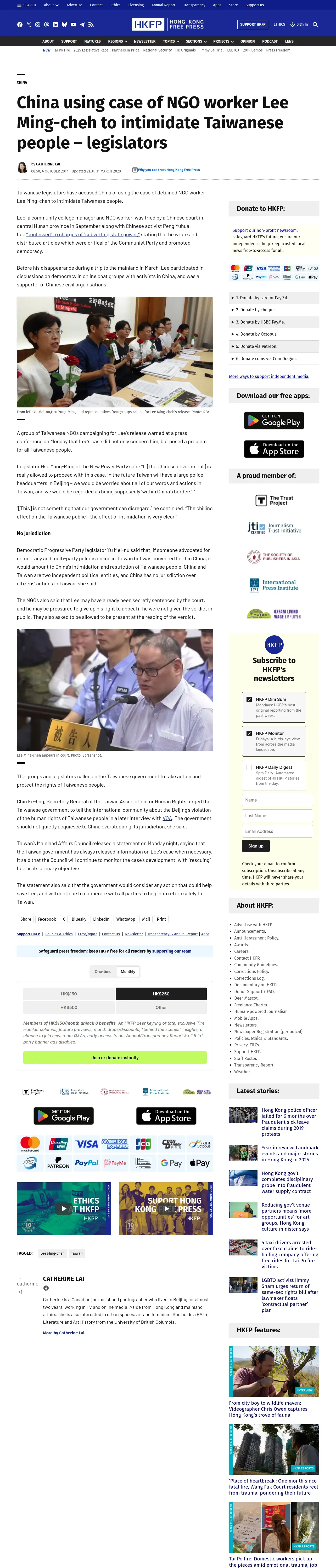 https://hongkongfp.com:443/2017/10/04/china-using-case-ngo-worker-lee-ming-cheh-intimidate-taiwanese-people-legislators/