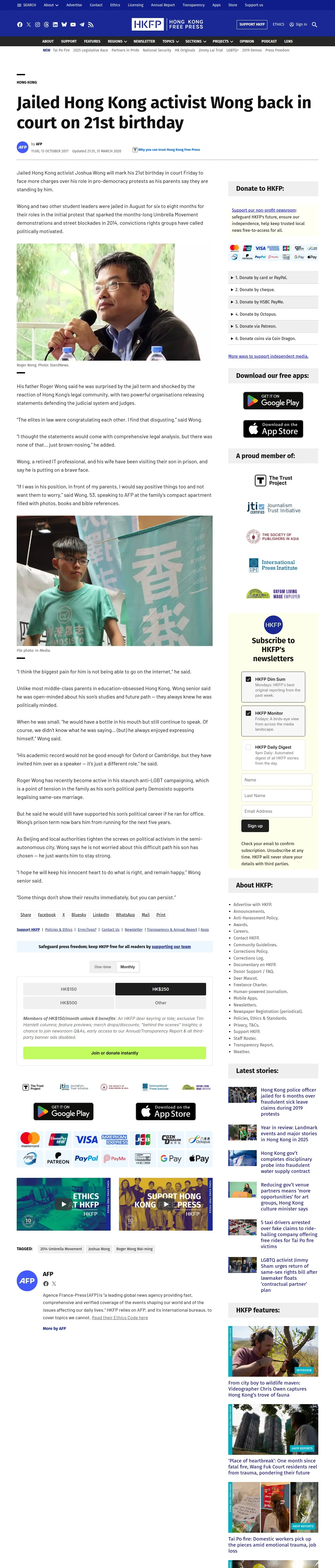 https://hongkongfp.com:443/2017/10/13/jailed-hong-kong-activist-wong-back-court-21st-birthday/