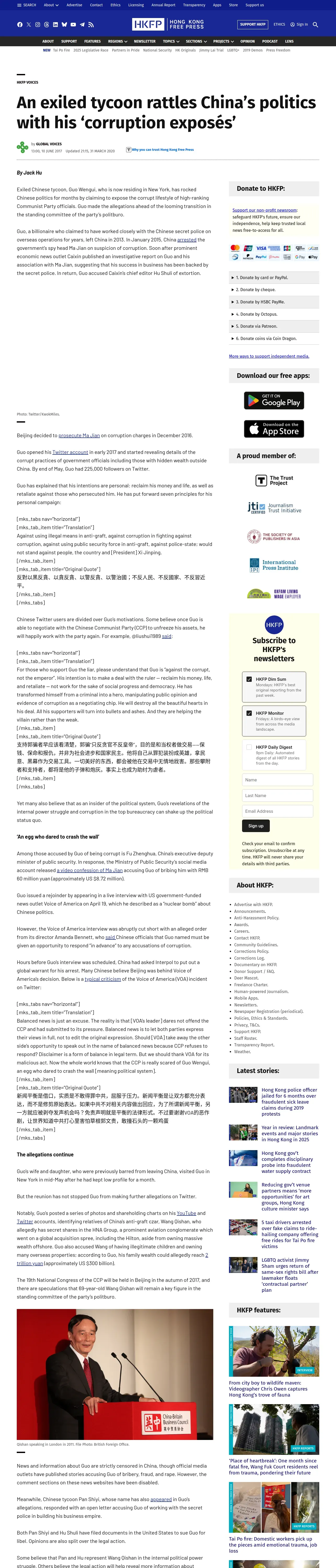 https://hongkongfp.com:443/2017/06/10/exiled-tycoon-rattles-chinas-politics-corruption-exposes/