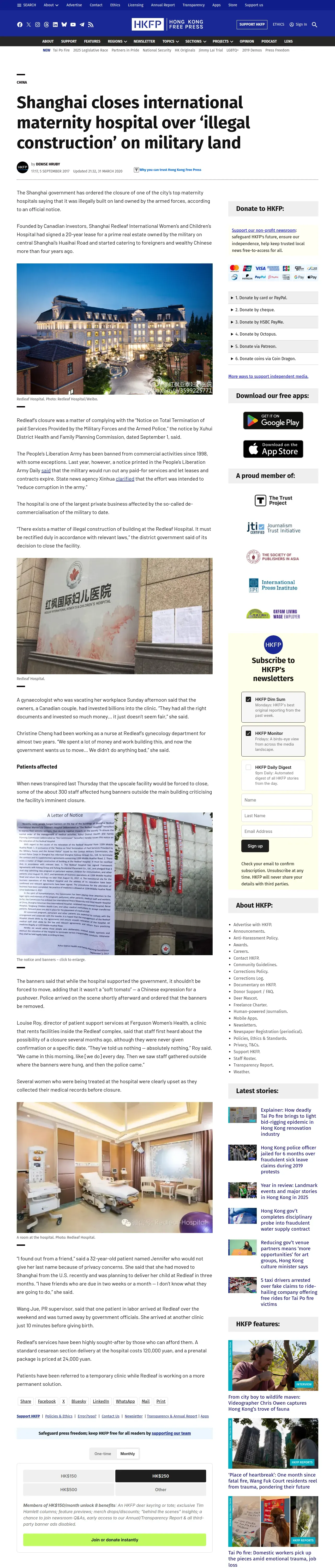 取得元URL: https://hongkongfp.com:443/2017/09/05/shanghai-closes-international-maternity-hospital-illegal-construction-military-land/