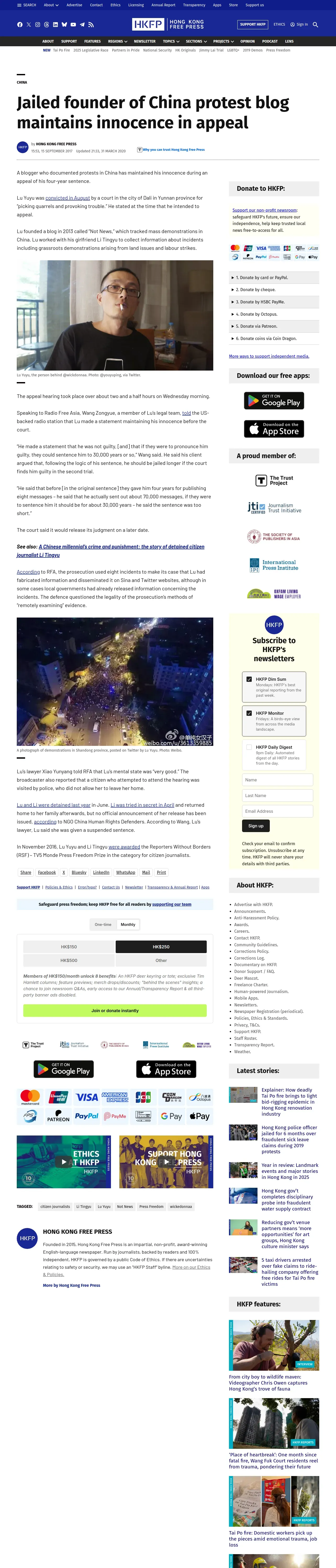 https://hongkongfp.com:443/2017/09/15/jailed-founder-china-protest-blog-maintains-innocence-appeal/