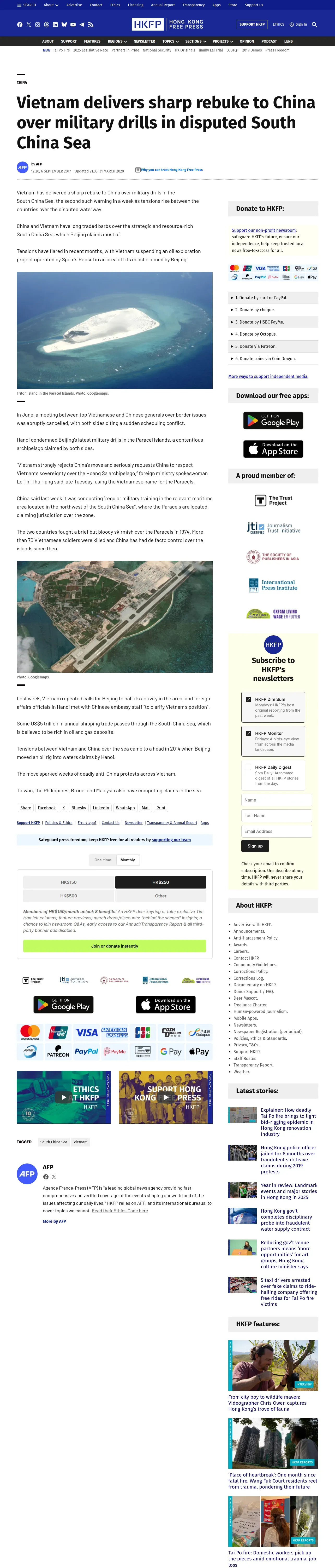取得元URL: https://hongkongfp.com:443/2017/09/06/vietnam-delivers-sharp-rebuke-china-military-drills-disputed-south-china-sea/