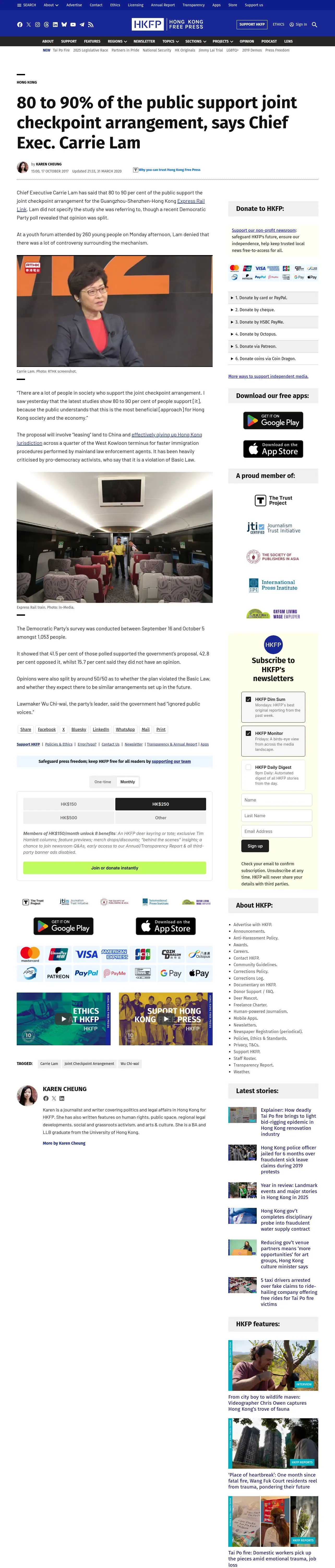 https://hongkongfp.com:443/2017/10/17/80-90-public-support-joint-checkpoint-arrangement-says-chief-exec-carrie-lam/