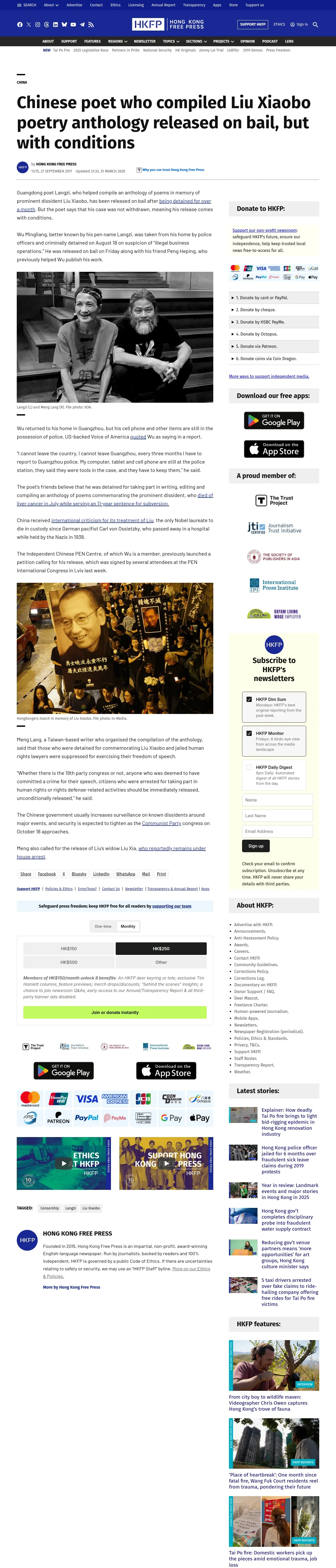 https://hongkongfp.com:443/2017/09/27/chinese-poet-compiled-liu-xiaobo-poetry-anthology-released-bail-conditions/