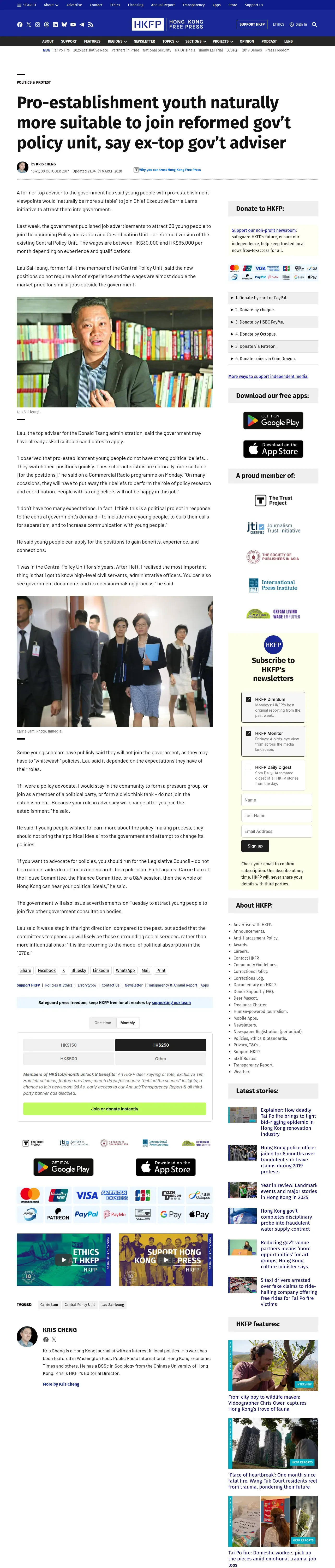 https://hongkongfp.com:443/2017/10/30/pro-establishment-youth-naturally-suitable-join-reformed-govt-policy-unit-say-ex-top-govt-adviser/