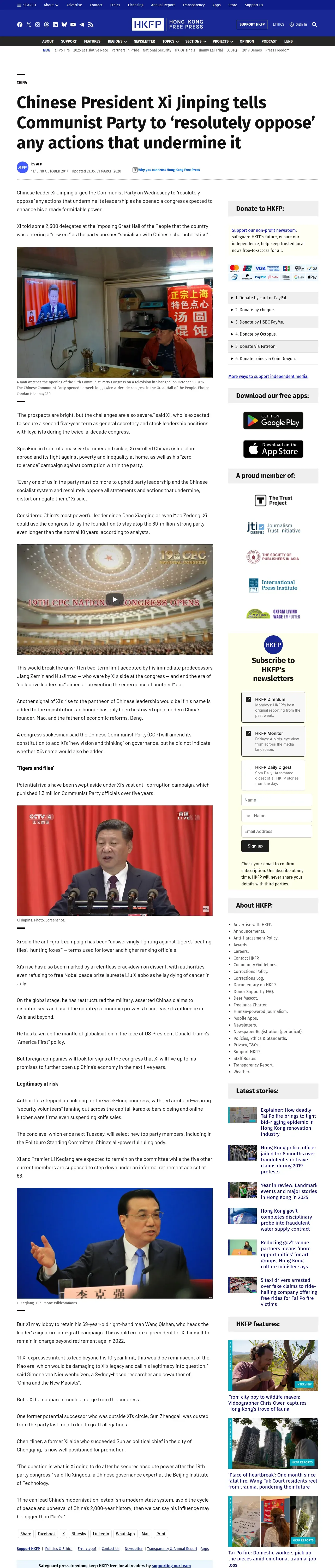https://hongkongfp.com:443/2017/10/18/chinese-president-xi-jinping-tells-communist-party-resolutely-oppose-actions-undermine/