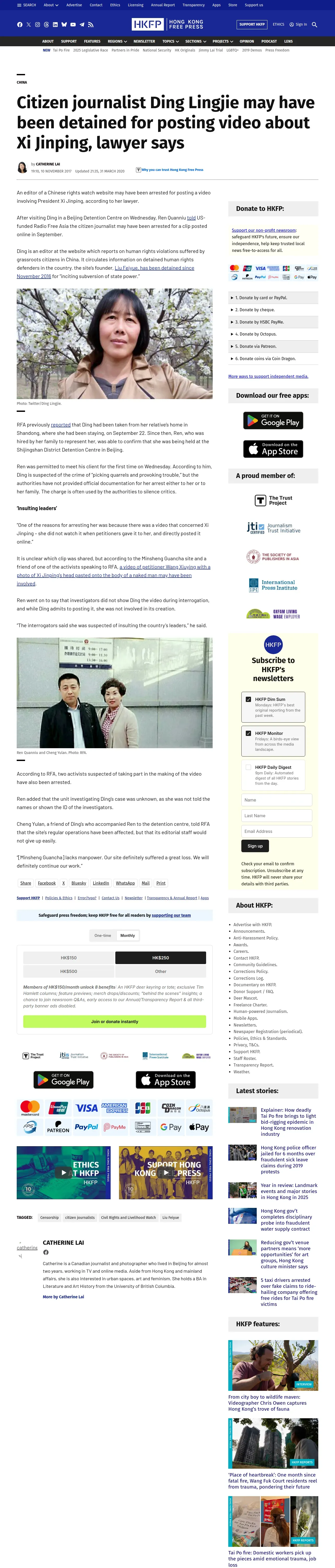 https://hongkongfp.com:443/2017/11/10/citizen-journalist-ding-lingjie-may-detained-posting-video-xi-jinping-lawyer-says/