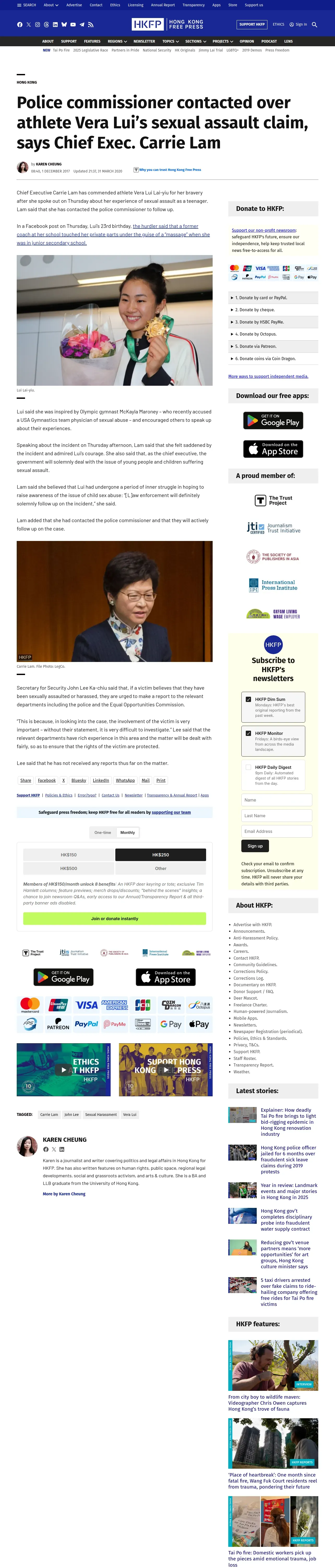 https://hongkongfp.com:443/2017/12/01/police-commissioner-contacted-athlete-vera-luis-sexual-assault-claim-says-chief-exec-carrie-lam/
