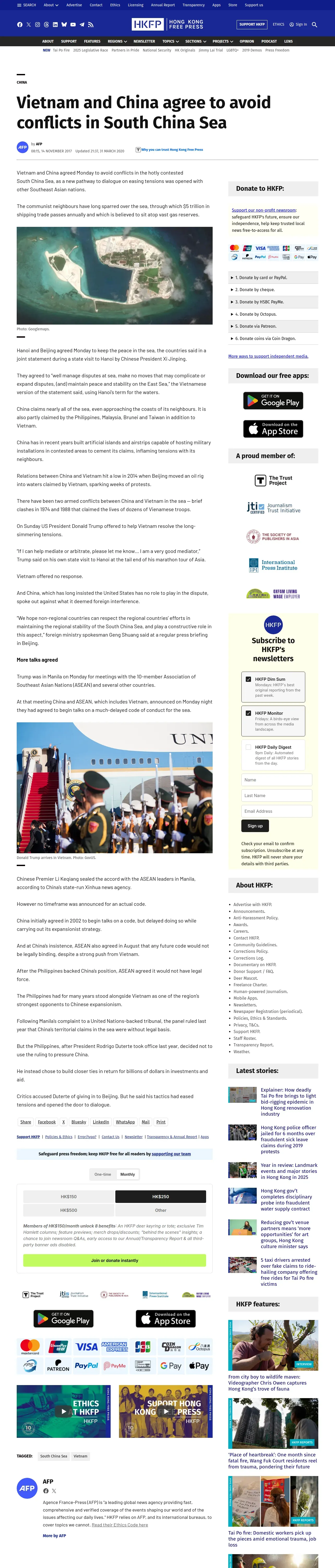 取得元URL: https://hongkongfp.com:443/2017/11/14/vietnam-china-agree-avoid-conflicts-south-china-sea/