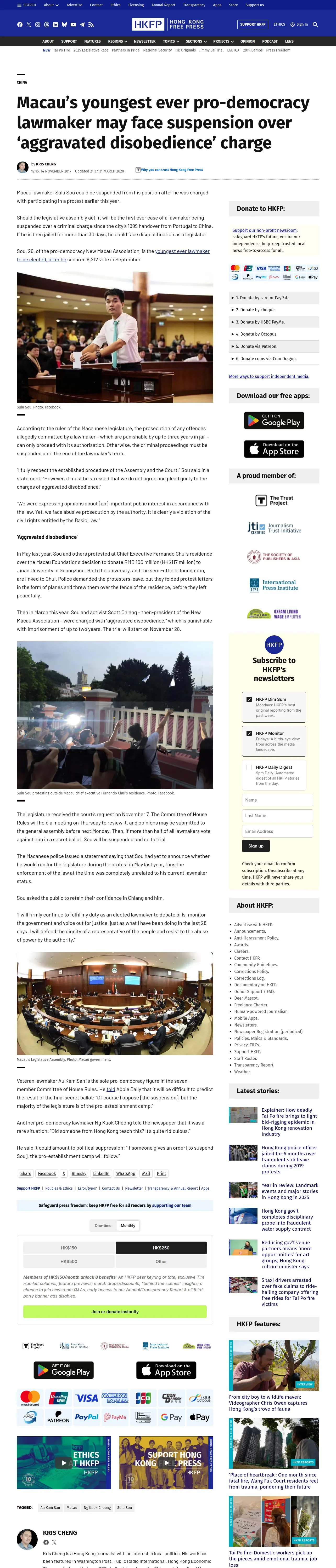 https://hongkongfp.com:443/2017/11/14/macaus-youngest-ever-pro-democracy-lawmaker-may-face-suspension-aggravated-disobedience-charge/