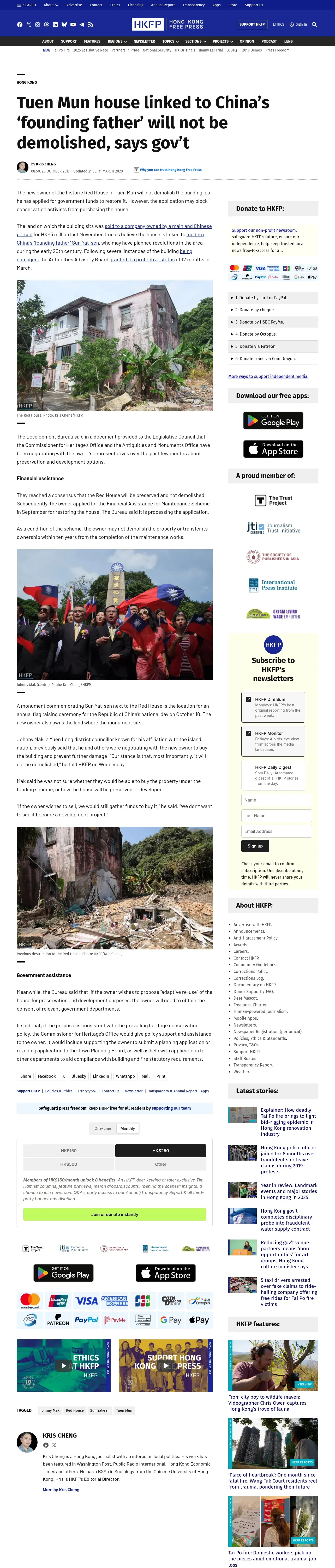 https://hongkongfp.com:443/2017/10/26/tuen-mun-house-linked-chinas-founding-father-will-not-demolished-says-govt/