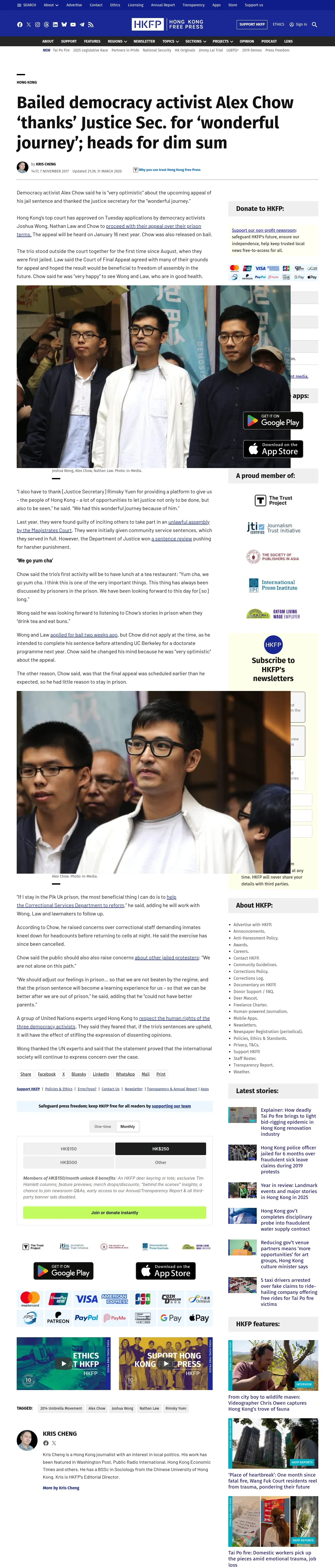 https://hongkongfp.com:443/2017/11/07/bailed-democracy-activist-alex-chow-thanks-justice-sec-wonderful-journey-heads-dim-sum/