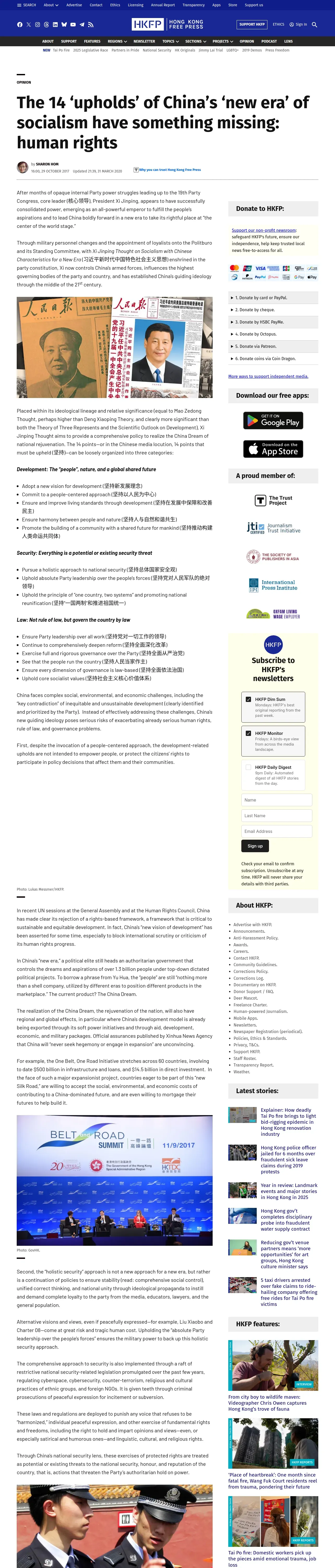 https://hongkongfp.com:443/2017/10/29/14-upholds-chinas-new-era-socialism-something-missing-human-rights/
