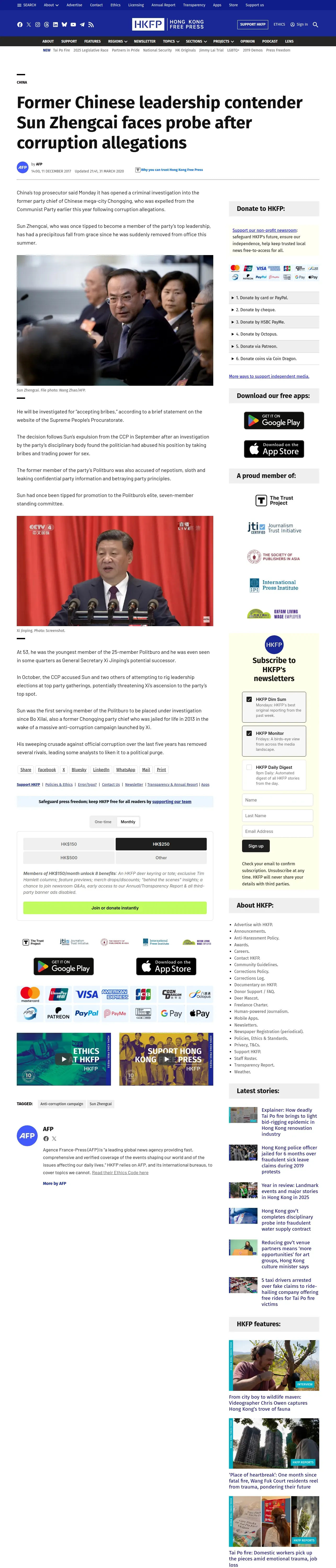 取得元URL: https://hongkongfp.com:443/2017/12/11/former-chinese-leadership-contender-sun-zhengcai-faces-probe-corruption-allegations/